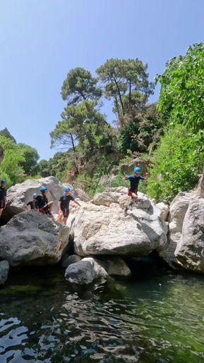 On this tour, you will navigate through a beautiful canyon. You can do multiple jumps and a 6m rappel, but this is optional. You'll swim through scenic caves, be surrounded by impressive high cliffs, jump off rocks (or watch others if you prefer to skip), slide down natural formations, and let yourself be carried by the flowing stream. If you're lucky, you might even spot turtles or lizards along the way. It’s an adventurous trail you won’t forget. You need to swim through several stretches of deep water (some of which are 20-30 meters in length), so it's important that you can swim well independently. We have life jackets for children for extra support.